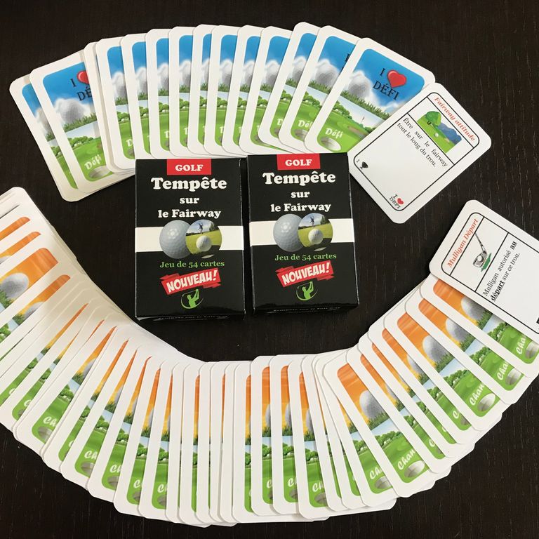 Pour démarrer, vous allez mélanger les cartes chances et les cartes défis séparément. Les cartes chance vous donneront des «supers pouvoirs» que vous allez pouvoir utiliser lors d’un trou. (Ex : bunker éjectable)